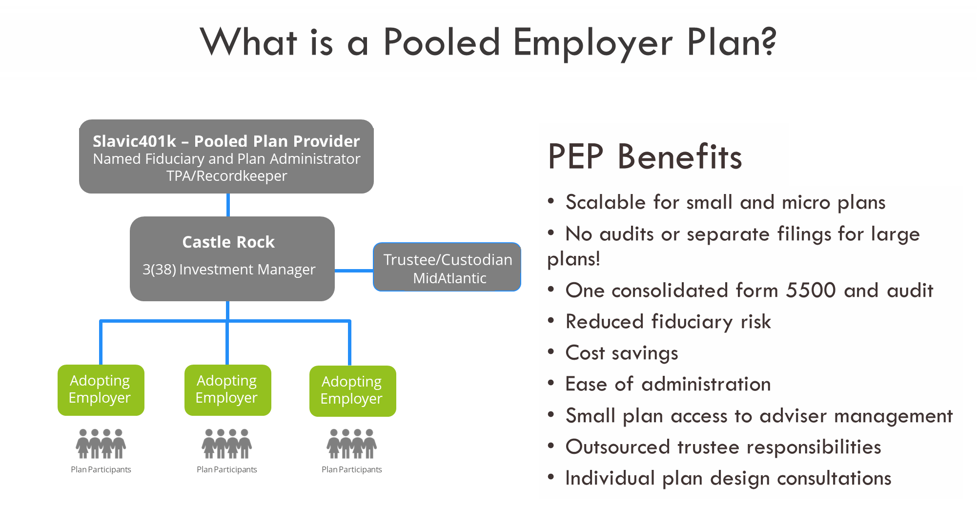 A Pooled Employer Plan (PEP) is a 401(k) solution designed to bring together companies of all sizes—...